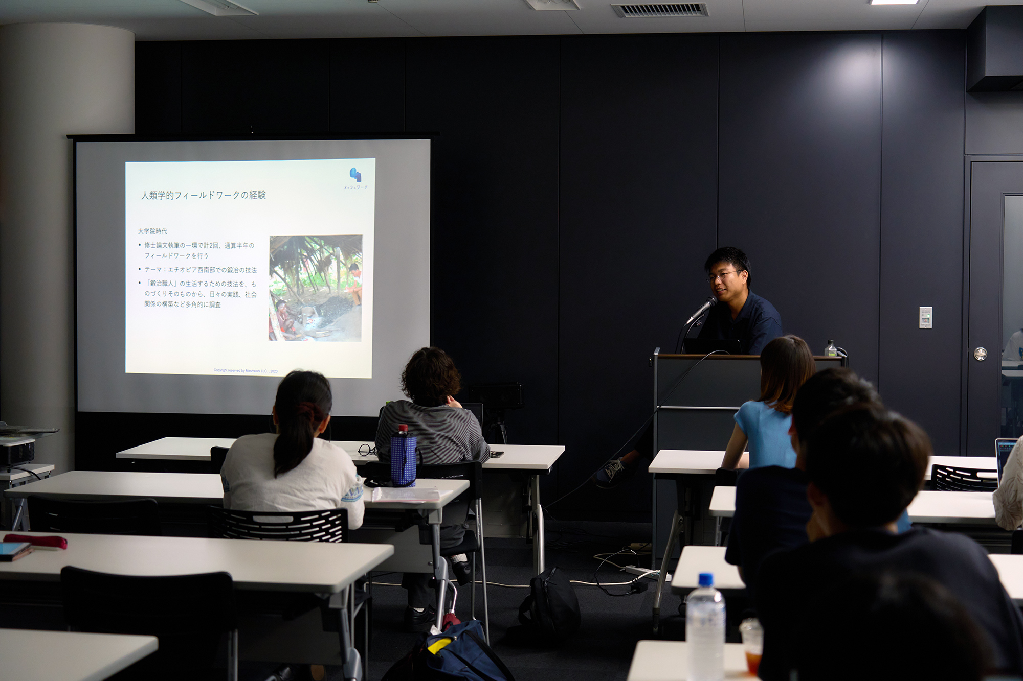 - 合同会社メッシュワーク共同創業者。国際基督教大学(ICU)、京都大学大学院にて文化人類学を修める。米国系IT企業にて勤務後、UXコンサルティング企業にてコンサルタント・特別研究員として勤務。大手メーカー等のUX企画、リサーチに携わる。現在は企業への人類学的アプローチに関する研修、フィールドワークを伴うリサーチを担当。人類学的視点を企業やあらゆる組織でのリサーチやプロジェクトに取り入れるため、実践・研究を行っている。