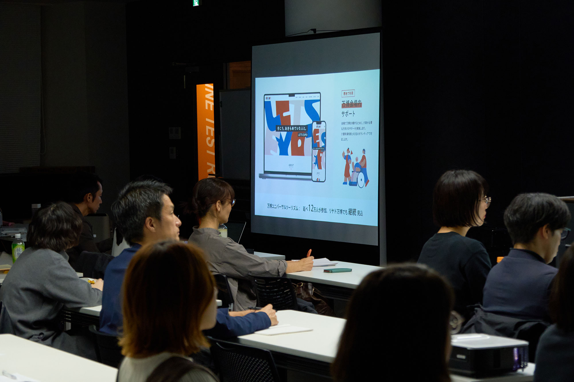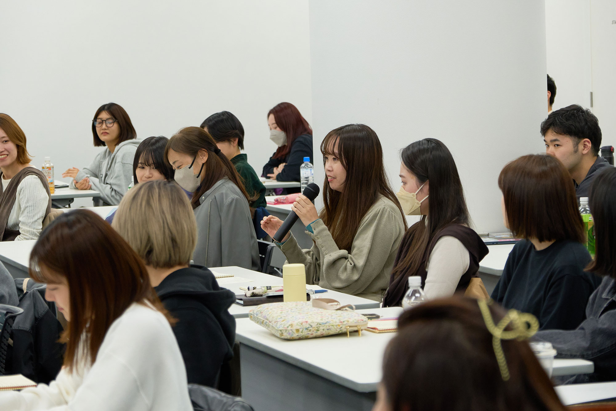 ワークショップのテーマは、「東京デザインプレックス研究所の受付カウンターのアイデアを考える」。ゴールは入学者数が増えることとして設定し、先ほど教わったトレーニング方法に沿って新しい着眼点を見つけていきます。学生たちからは、「キーボードで会話する受付」「人とのかかわりがいらないデジタル化された受付」など、人や手間をなくしていくアイデアが多く挙げられました。