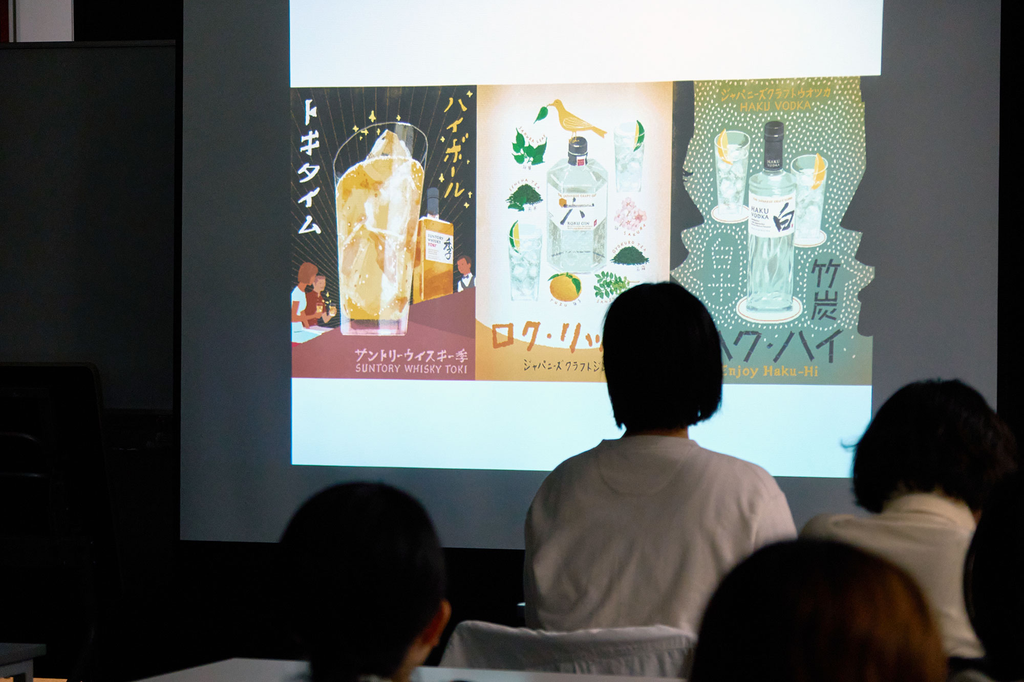 「仕事のつながりは、人とのつながり。“運”というのも同じで、人とのつながりが、良い運につながっていきます。良い運が来るか来ないかという発想ではなく、自分から動いて良い運と出会う確率を上げればいいのです」と木内さん、「なるべく多くの人に出会い、その人との出会いやつながりを大切にしてください」とお話ししてくださいました。自ら行動して多くのつながりを得た木内さんの言葉が、学生たちの強い原動力になった今回の授業。魅力的な木内さんの絵も堪能しながらの特別な時間となりました。
