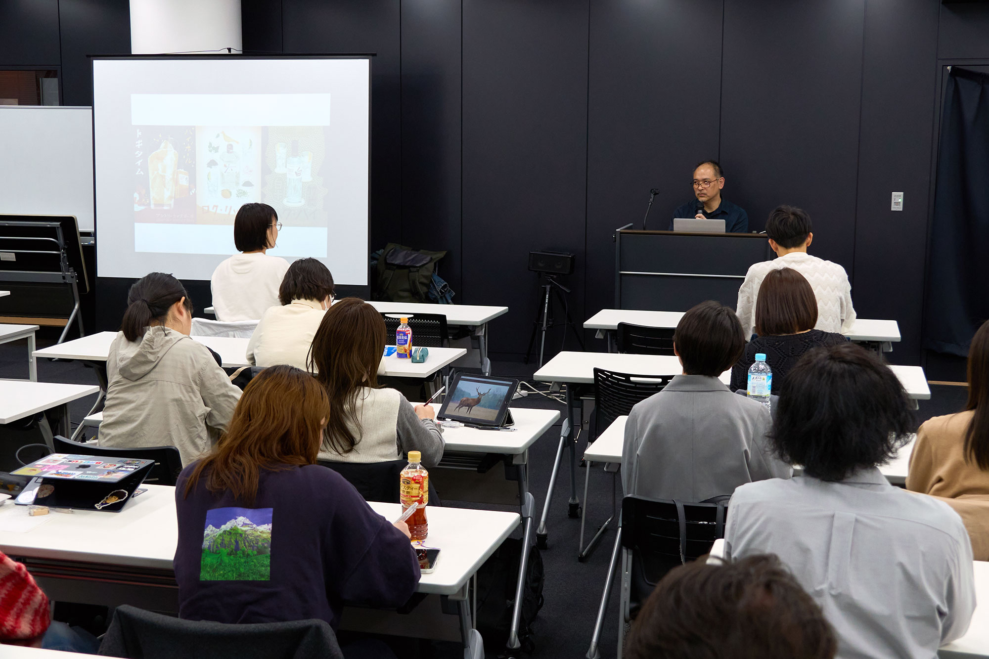 今回は初めてのご登壇となる、イラストレーターの木内達朗さんの授業をレポート。以前、成田久さんの授業で「共にクリエイトしたい憧れの人にラブレターを書く」というワークを行いました。その際、ある学生が熱いメッセージを送ったのが木内さん。その想いが届き今回の授業が実現しました。木内さんご自身も、人とのつながりや縁が仕事のきっかけになっていったという実感があると言います。ご自身の歩みを振り返りながら、 “人とのつながり”をテーマにお話していただきます。