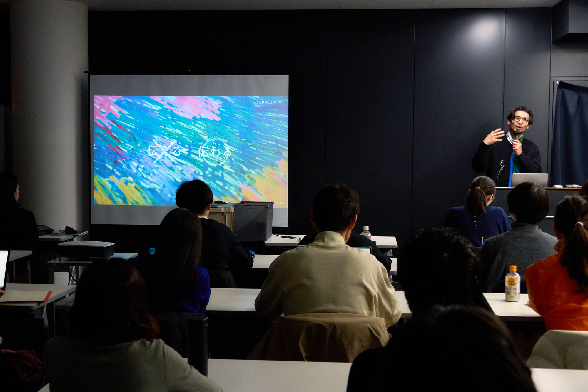「制作や発信の機会が増えた現代では、“伝える”と“伝わる”には大きな差があり、ほとんどのものが本当の意味で伝わっていないのではないか」と疑問を投げかける桑山さん。伝わるものを生み出すためには、「なぜこの商品に、この作家の、この作品なのか」という必然性をもたせ、背景や文脈までを含めて設計すること。また、生活者の視点に立ち返り、「自分だったら買うだろうか」「休日に足を運ぶだろうか」と問い直すこと。このように感情と論理を行き来しながらアウトプットに至るプロセスが、より優れたクリエイティブに繋がると言います。